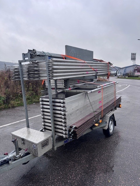 Begagnad Assco Ramställning i aluminium med Ställningstrailer finns i Göteborg.