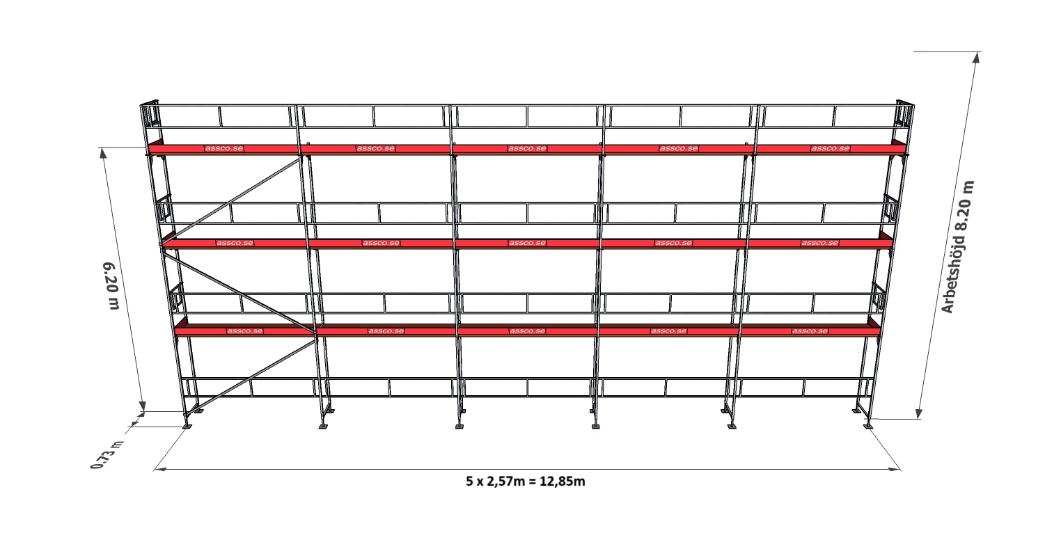 13m lång x 8 m hög arbetsyta, 2,57m facklängd.