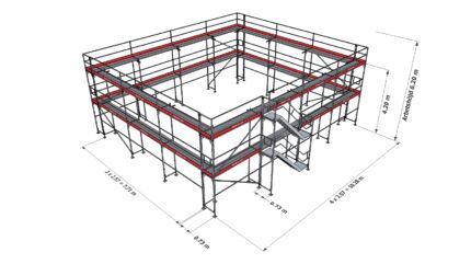 Till detta paketet får man med stegplan, sparklister, trapptorn, väggfästen, ramar, räcken, kryss, låsningskrok, ALLT som behövs för att bygga en komplett ställning.